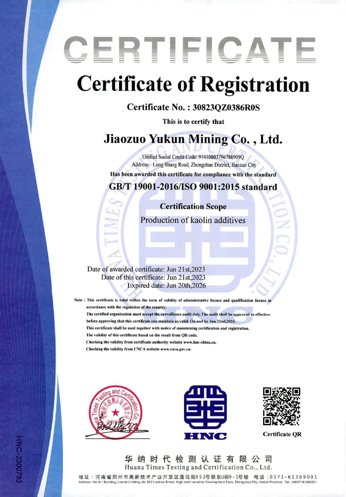 質(zhì)量管理體系認證證書-英文版